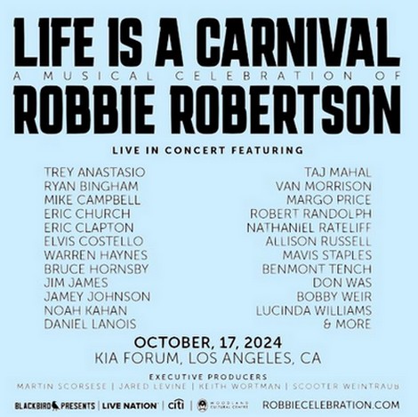 L’événement "Life Is a Carniva" réunira pléthore d’artistes et sera produit par Martin Scorsese, ami et collaborateur de longue date de Robertson